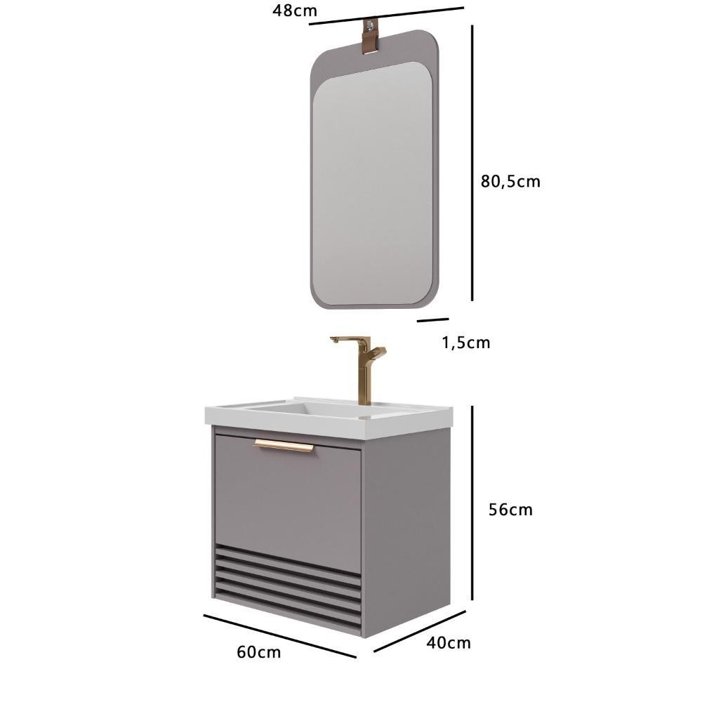 Gabinete Para Banheiro Com Lavatório Paraty Platina MGM Moveis 60cm