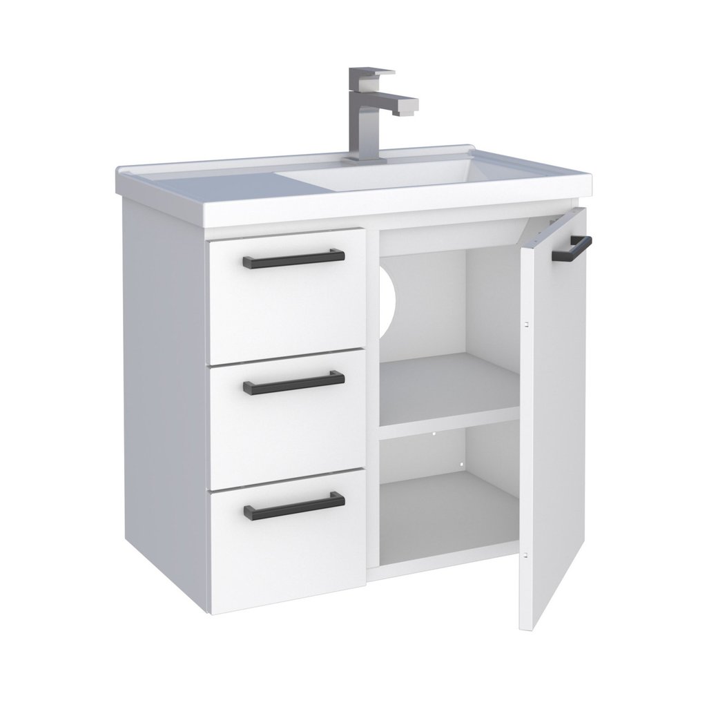 Gabinete Para Banheiro Em Aço Ameixa - Cozimax. O toucador em aço para banheiro Ameixa, da Cozimax, traz beleza e estilo em um só produto. Fabricado em aço eletrogalvanizado com garantia de 5 anos, é protegido por pintura em pó eletrostática, possui lavatório em mármore sintético com linhas retas e bordas sobrepostas, espaço interno para guardar os produtos de higiene, gavetas de polipropileno virgem que não resseca e não quebra, puxadores em alumínio. Dimensões do toucador: - Largura: 61,5 cm - Altura: 54,9 cm - Profundidade: 36 cm Características: - Produto: Toucador - Modelo: Ameixa - Marca: Cozimax - Lavatório: Mármore sintético - Quantidade de portas: 1 - Quantidade de gavetas: 3 - Quantidade de nichos: Não possui - Pintura: Pó eletrostática - Estrutura: Aço eletrogalvanizado Estilo: Moderno Peso (kg): 16 Garantia: 5 Anos Altura (cm): 54.6 Acabamento: Pintura Largura (cm): 61.5 Possui Pés: Suspenso Possui Sifão: Não Possui Tampo: Não Possui Nichos: Não Possui Portas: Sim Tipo de Porta: Bater Acompanha Cuba: Não Possui Gavetas: Sim Suporta Até (kg): 15 Profundidade (cm): 36 Escala de Brilho: Acetinado Gaveta com Chave: Não Tipo de Gabinete: Gabinete Suspenso Material da Porta: Aço Origem do Produto: Nacional Ambiente Principal: Banheiro Material da Gaveta: Polipropileno Material Principal: Aço Possui Prateleiras: Sim Acabamento da Porta: Pintura Sapatas Niveladoras: Não Tamanho do Gabinete: Médio: de 60cm a 80cm de largura Acabamento da Gaveta: Pintura Material da Prateleira: Aço Peso Máximo por Gaveta: 5 Suporte para Toalheiro: Não Espessura da Prateleira: 1.2 Acabamento da Prateleira: Pintura Tipo de Puxador da Porta: Externo Comprimento da Prateleira: 35 Escala de Brilho da Porta: Brilhante Tipo de Puxador da Gaveta: Externo Escala de Brilho da Gaveta: Brilhante Peso Máximo por Prateleira: 5 Tipo de Corrediça da Gaveta: Plástica Material do Puxador da Porta: Alumínio Material do Puxador da Gaveta: Alumínio Tipo de Móvel para o Banheiro: Gabinete de Banheiro Escala de Brilho da Prateleira: Brilhante Possui Recorte No Tampo Para Cuba: Não Tipo de Dobradiça/Corrediça da Porta: Metálica Possui Recorte No Tampo Para Misturador: Sim Acompanha Parafusos Para Fixação Na Parede: Sim Marca: Cozimax Tonalidade: Branco Cor: Branco Cor do Produto: Branco Itens Inclusos: 1 Gabinete, kit de ferragens e manual de montagem Cor Predominante: Branco Linha ou Coleção: Ameixa Tamanho Indicado Para Cuba: Possui lavatório em Mármore Sintético Quantidade de Gavetas: 03 Gavetas Medida do Recorte Para Misturador: Possui lavatório em Mármore Sintético
