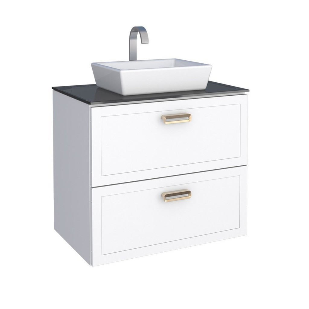 Gabinete Para Banheiro Em Aço Com Tampo Em Vidro Temperado Sem Cuba Odin Branco