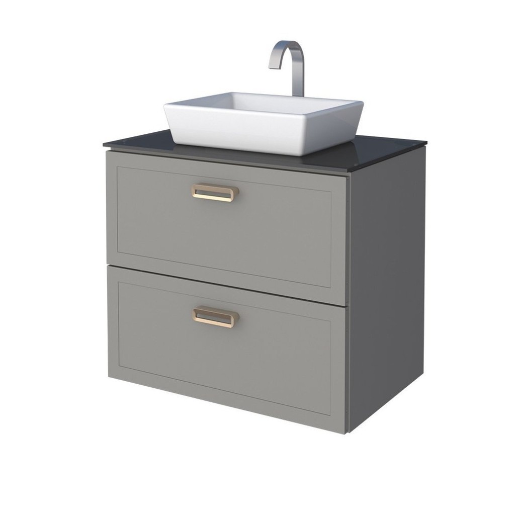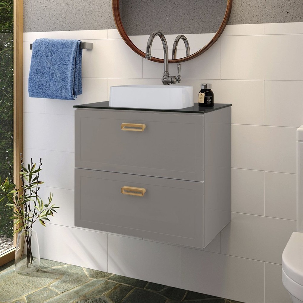 Gabinete Para Banheiro Em Aço Com Tampo Em Vidro Temperado Sem Cuba Odin Cinza