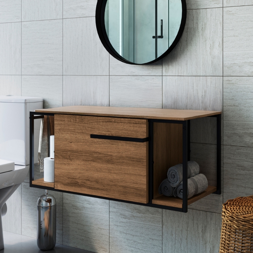 Na Dkadi Decor, sua Loja Oficial na Shopee, a qualidade da madeira encontra a confiança que você procura. Valorizamos seu tempo com nosso Envio Imediato 🚀, despachando seus pedidos com total agilidade. Nossa Boa Reputação ⭐ reflete o compromisso em oferecer excelência e satisfação total ao cliente. Redefina o conceito de sofisticação no seu banheiro com este gabinete suspenso que une a modernidade da estrutura industrial ao acolhimento do tom amadeirado. Este móvel é a oportunidade perfeita para quem deseja total liberdade criativa, permitindo que você escolha a cuba que mais combina com seu estilo e crie um ambiente exclusivo. Com um design inteligente que inclui suporte para toalhas integrado e compartimentos práticos, ele otimiza seu espaço e facilita a limpeza do dia a dia, trazendo elegância e organização em cada detalhe. E lembre-se: para qualquer detalhe, você conta com o suporte humanizado da loja para garantir uma compra tranquila e segura. Características ⚙️ Modelo: Gabinete Suspenso Industrial 80cm P1019 Diferencial: Porta toalha integrado diretamente à estrutura metálica Tipo de Instalação: Suspenso (otimiza espaço e facilita a limpeza do piso) Armazenamento: 1 Porta basculante, 1 prateleira interna e 2 nichos externos Material: Estrutura em aço e corpo em MDP (15mm) de alta qualidade Dimensões: 37 cm (Altura) x 80 cm (Largura) x 36 cm (Profundidade) Peso Máximo Suportado: 15 kg bem distribuídos Tire suas dúvidas 💡 Este gabinete já vem com a pia inclusa? Não, este modelo é entregue sem a cuba. Isso foi pensado justamente para que você tenha a total liberdade de escolher o modelo de sobrepor que mais gosta, personalizando seu banheiro com seu toque único. Ele é resistente à umidade do banheiro? Sim! A estrutura em aço com pintura protetora e o corpo em material resistente são ideais para o ambiente. Recomendamos apenas manter o local bem ventilado para preservar o acabamento por muitos anos. O porta-toalhas ocupa muito espaço? Pelo contrário! Ele é integrado à própria estrutura lateral do móvel, o que economiza espaço na sua parede e mantém a toalha de mãos sempre organizada e ao alcance de forma funcional. Como funciona a organização interna? Ele é super prático. A porta basculante esconde itens de higiene pessoal que você não quer deixar à vista, enquanto os nichos externos são perfeitos para perfumes ou itens decorativos. A cor do produto é exatamente igual à da imagem? As imagens buscam ser o mais fiéis possível ao design original. No entanto, pode haver diferença de cores no móvel devido à tela da pessoa, variando de acordo com as configurações de brilho e calibração do seu celular ou monitor. Garanta agora seu gabinete exclusivo e transforme seu banheiro com sofisticação e envio imediato!