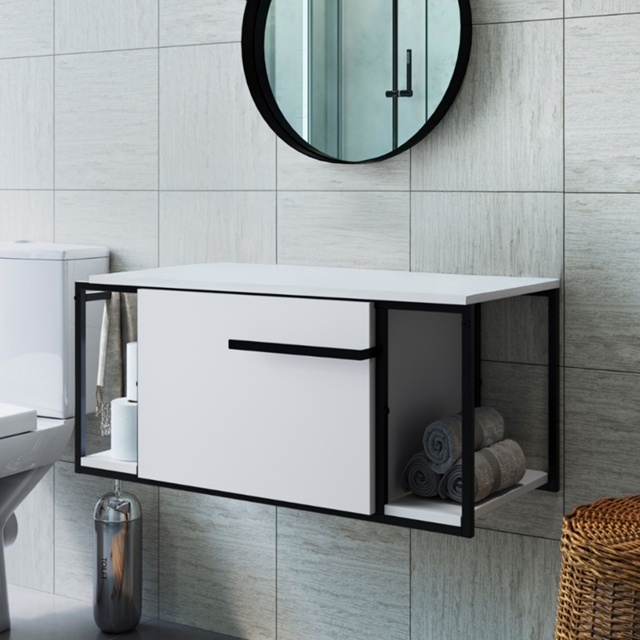 Gabinete para Banheiro Industrial de Metal Suspenso sem Cuba para Lavabo Moderno Resistente