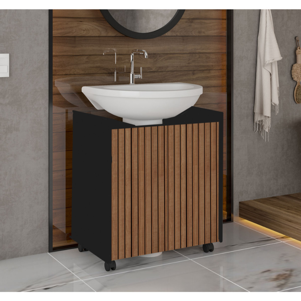 Gabinete para Banheiro Pia Lavatório de Coluna - Preto Ripado