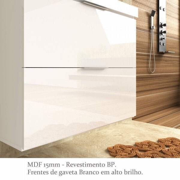 Gabinete para Banheiro Suspenso 3 Gavetas sem Cuba Pietra Branco/Branco Brilho