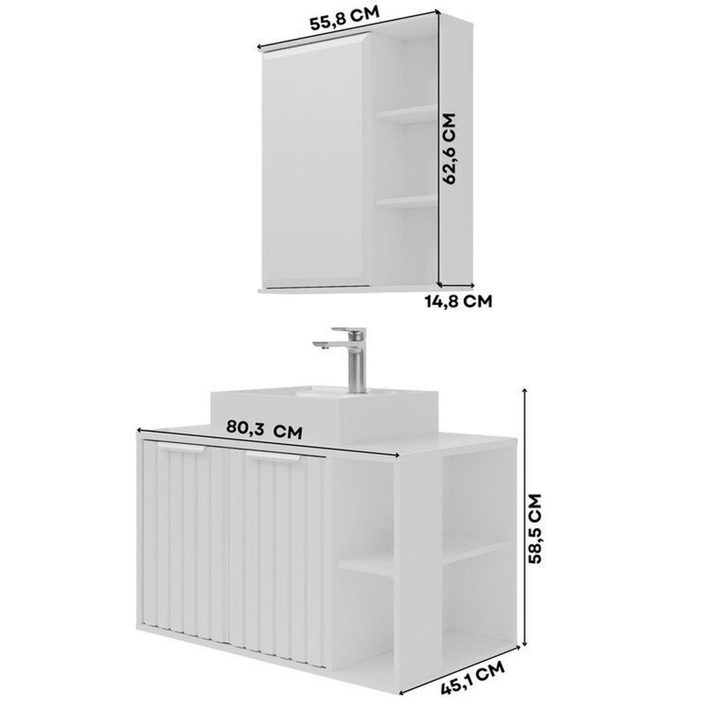 Gabinete Suspenso Banheiro Noruega 80cm com Cuba e Espelheira Treviso