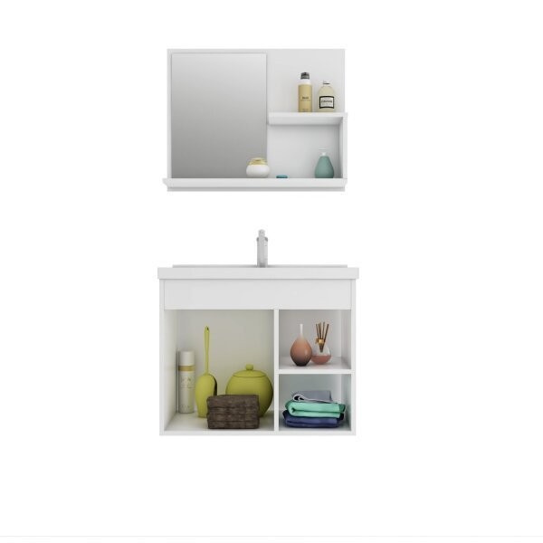 Gabinete Suspenso Com Cuba E Espelheira Isa Amêndoa/Branco