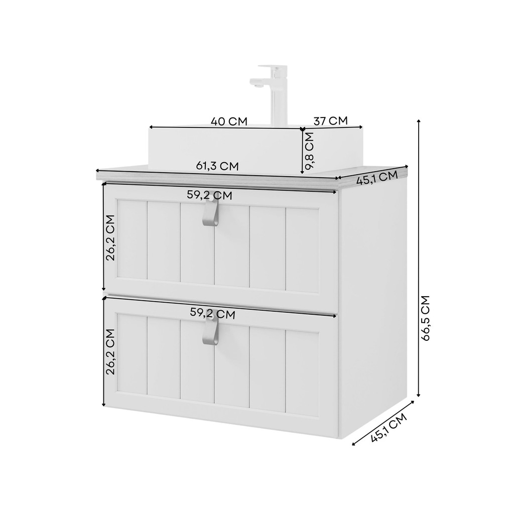O Gabinete Suspenso para banheiro Ketlyn foi projetado não apenas para fornecer funcionalidade e organização ao seu banheiro, mas também para adicionar um toque de estilo, sofisticação e elegância. O gabinete acompanha cuba em mármore sintepetico e é fabricado 100% em MDF com pintura UV, possui dobradiças metálicas e corrediças telescópicas, materiais de alta qualidade e resistência, proporcionando durabilidade e praticidade no uso diário. O Gabrinete Ketlyn é uma opção funcional e sofisticada para quem busca organização e estilo em seu banheiro. Estilo: Moderno Peso (kg): 24.5 Garantia: 03 Meses Altura (cm): 66.5 Acabamento: Pintura UV Largura (cm): 61.3 Possui Pés: Não Cor da Cuba: Branco Cor da Porta: Bege Possui Sifão: Não Possui Tampo: Sim Tipo de Cuba: Sobrepor Possui Nichos: Não Possui Portas: Sim Tipo de Porta: Basculante Acompanha Cuba: Sim Suporta Até (kg): 15 Formato da Cuba: Retangular Possui Espelhos: Não Profundidade (cm): 45.1 Escala de Brilho: Fosco Gaveta com Chave: Não Material da Cuba: Mármore Sintético Tipo de Gabinete: Gabinete Suspenso Acompanha Válvula: Não Material da Porta: MDF Material do Tampo: MDF Origem do Produto: Nacional Acabamento da Cuba: Polido Ambiente Principal: Banheiro Material da Gaveta: MDF Material Principal: MDF Possui Prateleiras: Não Resistente à Chuva: Não Acabamento da Porta: Pintura UV Tamanho do Gabinete: Médio: de 60cm a 80cm de largura Acabamento da Gaveta: Pintura UV Possui Tampo de Vidro: Não Peso Máximo por Gaveta: 5 Suporte para Toalheiro: Não Tipo de Puxador da Porta: Externo Escala de Brilho da Porta: Fosco Tipo de Puxador da Gaveta: Externo Escala de Brilho da Gaveta: Fosco Tipo de Corrediça da Gaveta: Metálica Telescópica Tipo de Móvel para Banheiro: Gabinete com Cuba Furação Para Cuba e Torneira: Sim Material do Puxador da Porta: Couro Material do Puxador da Gaveta: Couro Tipo de Móvel para o Banheiro: Gabinete de Banheiro Acompanha Manual de Instalação: Sim Informações Complementares (Novo): Não Possui Possui Recorte No Tampo Para Cuba: Sim Tipo de Dobradiça/Corrediça da Porta: Metálica Possui Recorte No Tampo Para Misturador: Sim Acompanha Parafusos Para Fixação Na Parede: Sim Marca: Espresso Móveis Cor Flex: Não Cor Interna: Cappuccino Cor do Produto: Cappuccino Itens Inclusos: 01 gabinete com cuba e manual de montagem Cor Predominante: Bege Linha ou Coleção: Decor Válvula Indicada: 1/4 32mm Medida da Cuba (C x L x P): 37 x 40 x 9,8 Medida do Recorte Para Cuba: 32 mm Quantidade de Portas: 1 Porta Quantidade de Gavetas: 01 Gaveta Medida do Recorte Para Misturador: 32 mm