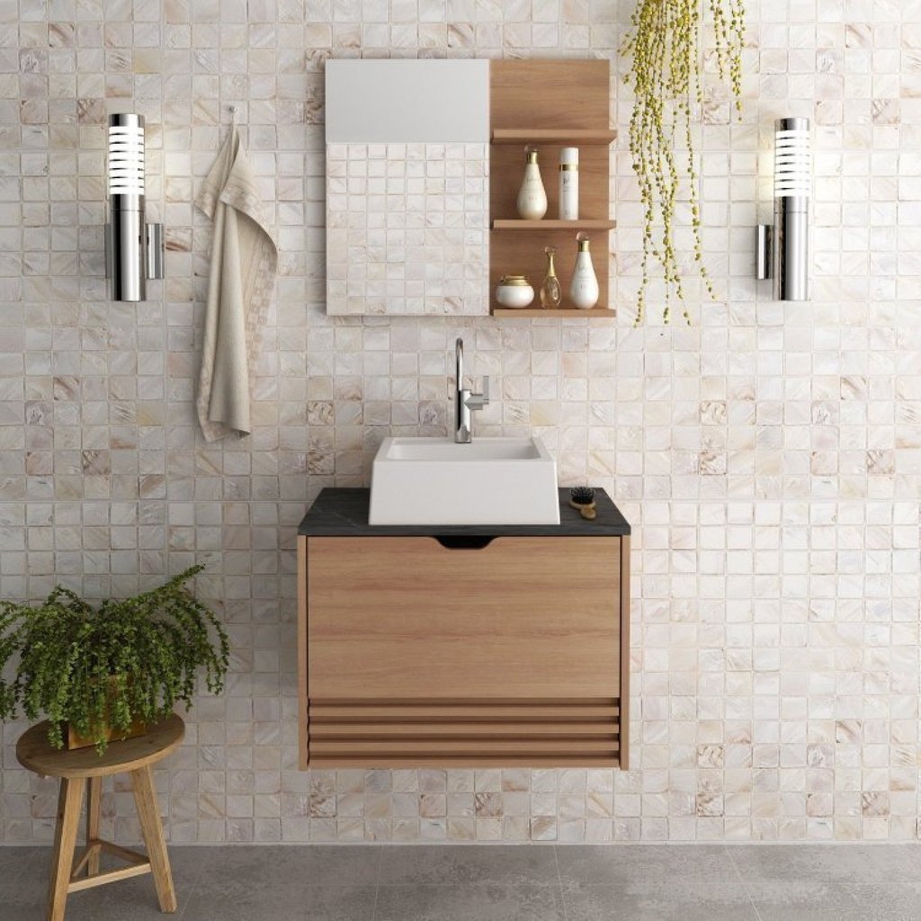 Quando falamos de banheiro pensamos em bem-estar. Pois o banheiro é onde a gente recarrega nossa energia vital, idealiza sonhos, e realiza toda a manutenção necessária para uma saúde física e mental. Com design prático e funcional, o móvel entrega ao ambiente toques de modernidade e elegância. Multifuncional, acondiciona produtos de higiene e beleza, porta escova, papel higiênico, toalhas, artigos de limpeza, entre tantos outros objetos pessoais. Balcão Gabinete Suspenso Para Banheiro Bn3613 Amêndoa. Estrutura em MDP e acabamento em BP. Não acompanha cuba. Acompanhar Manual de Montagem e Kit Ferragem. Garantia: 03 Meses Acabamento: BP Ambiente Principal: Banheiro Marca: Tecno Mobili Cor: Preto Cor do Produto: Preto Cor Predominante: Marrom