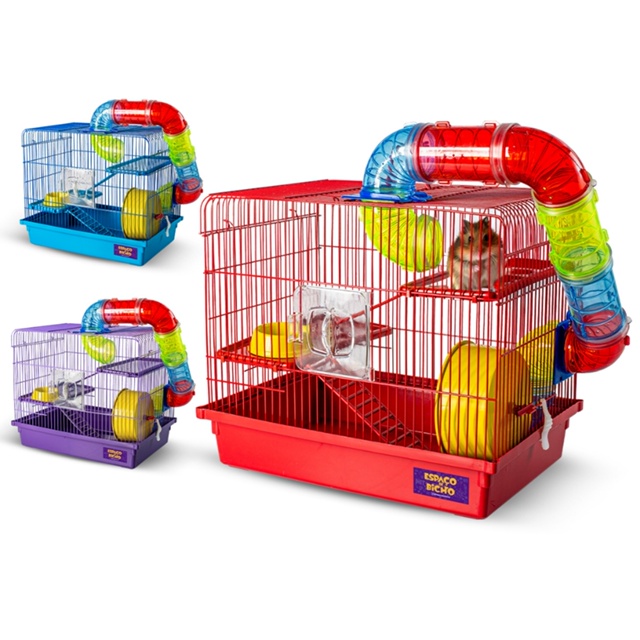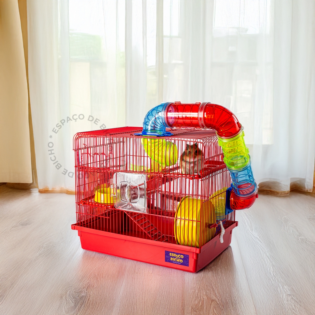 Gaiola Hamster Tubo 3 Andares Espaco De Bicho Completa com Rodinha