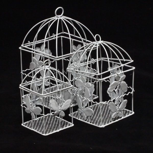 Gaiola Quadrada Aramada Branca - 3 unidades
