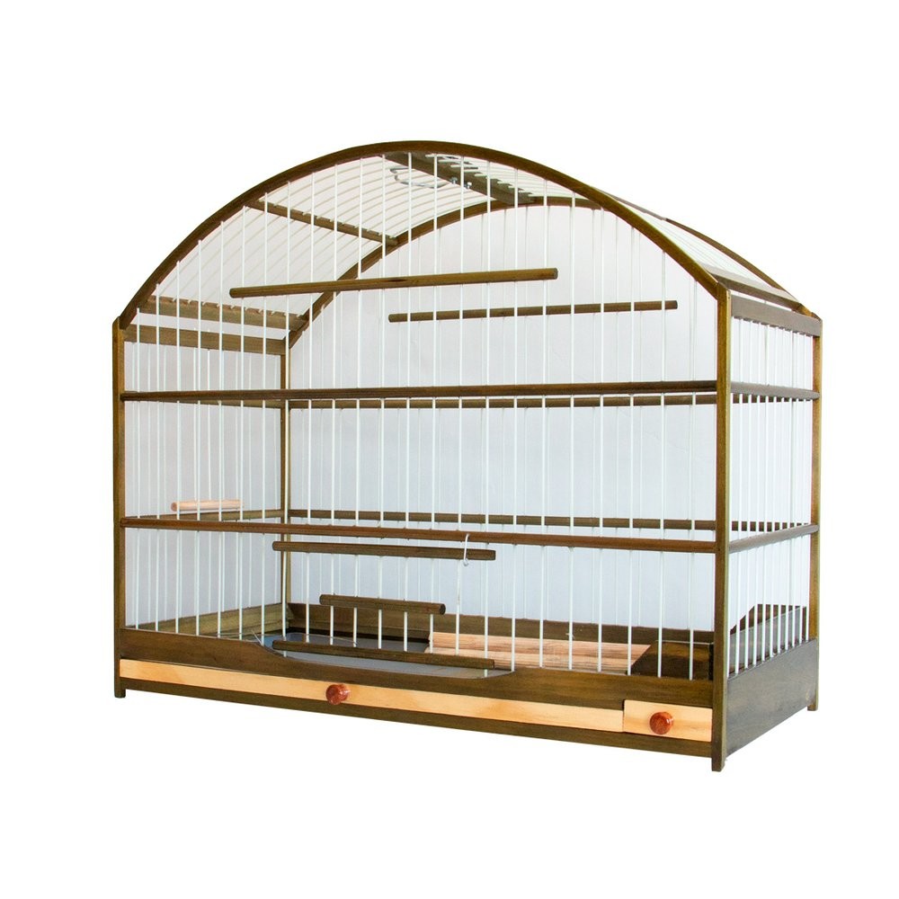 Gaiola Quadrada em Madeira Com Coxo Baixo Para Passarinho do Tipo Trinca Ferro Verde