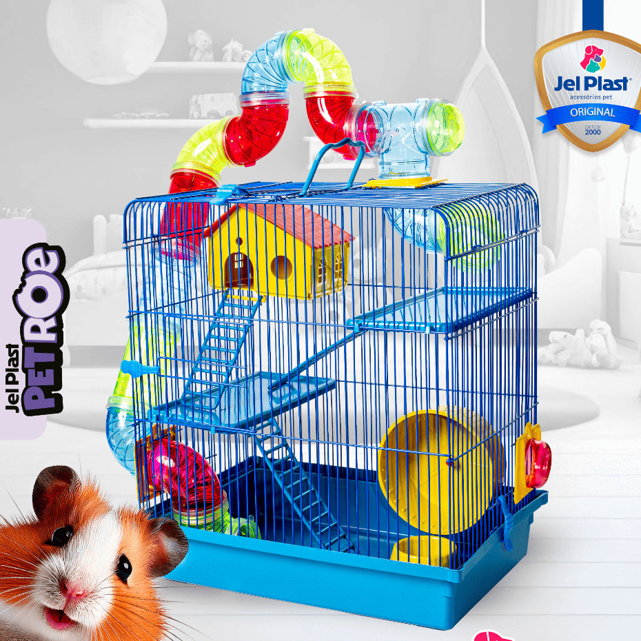 Gaiola Super Luxo 3 Andar Com Tubos Para Hamster Ramister Camundongo Chines Jel Plast