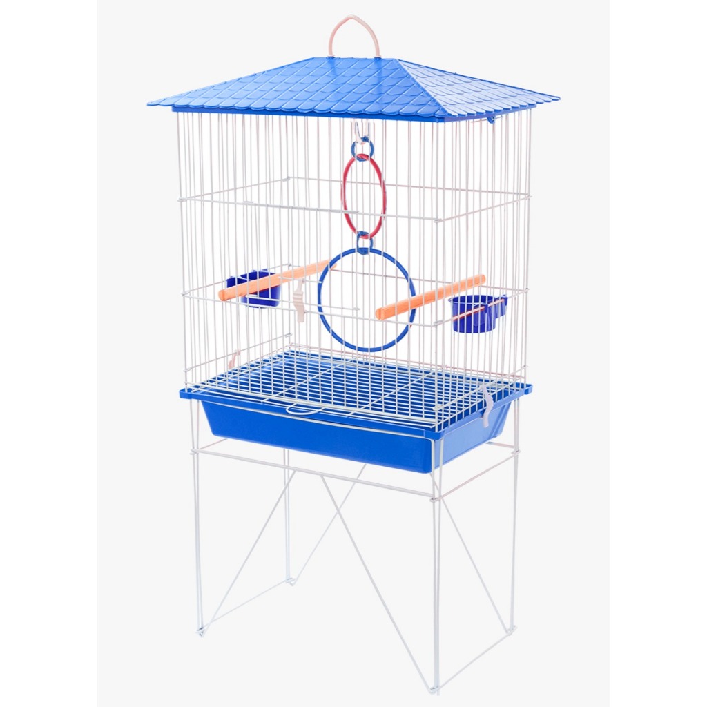 Gaiola Viveiro para Calopsita + Acessorios Brinquedo Argola Teto Plástico Com Pés Cor Azul Amarelo
