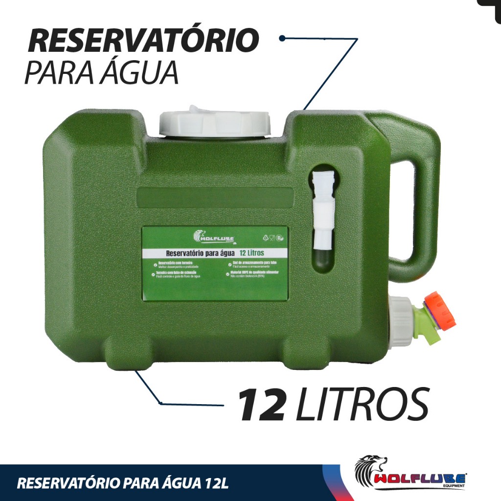 O Reservatório Para Água 12 Litros (3099W) - Lupus, é ideal para armazenamento e transporte seguro de água e outros líquidos. Fabricado com material resistente, atende tanto a necessidades domésticas quanto a usos em áreas externas, como acampamentos. Possui alça ergonômica, que facilita o transporte, tampa que garante a vedação, evitando vazamentos, e torneira para facilitar o despejo do líquido armazenado. Descrição do Produto: • Material: HDPE (BPA Free). • Capacidade: 12 Litros. • Cor: Verde. • Tampa com vedação segura. • Alça para transporte. • Torneira com Tubo de Extensão. • Slot de Armazenamento Para Tubo. Referência: 3099W. Cód. de Fábrica: 3099W. Marca: Lupus.