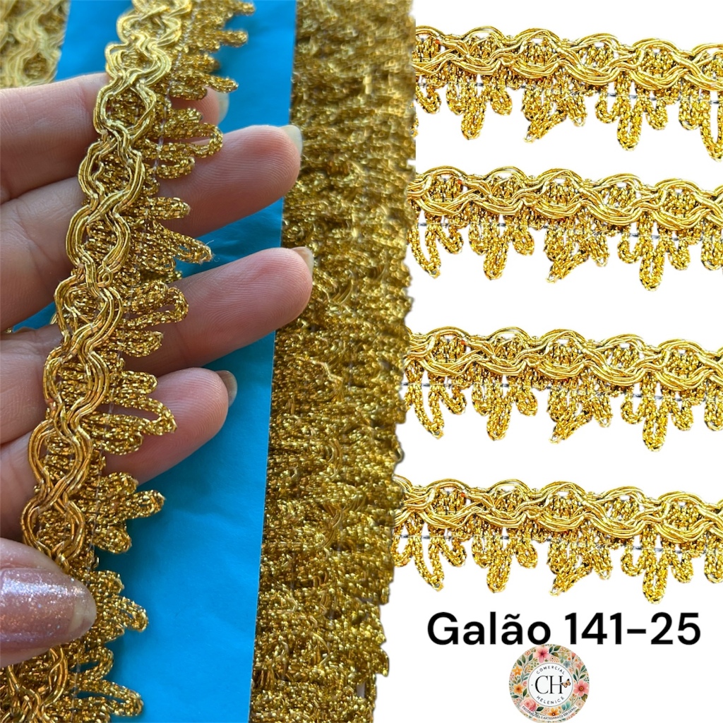 Encontre o item Galão Franja Dourado Passamanaria Bordado Metalizado 25mm com 20 mts Ref:141-25 na subcategoria Artigos de Arte (de Papelaria), disponível na Shopee Brasil por R$ 30,50. Nota 5.0 de 5 na Shopee e 114 unidades vendidas, este produto se destaca pelo excelente custo-benefício.