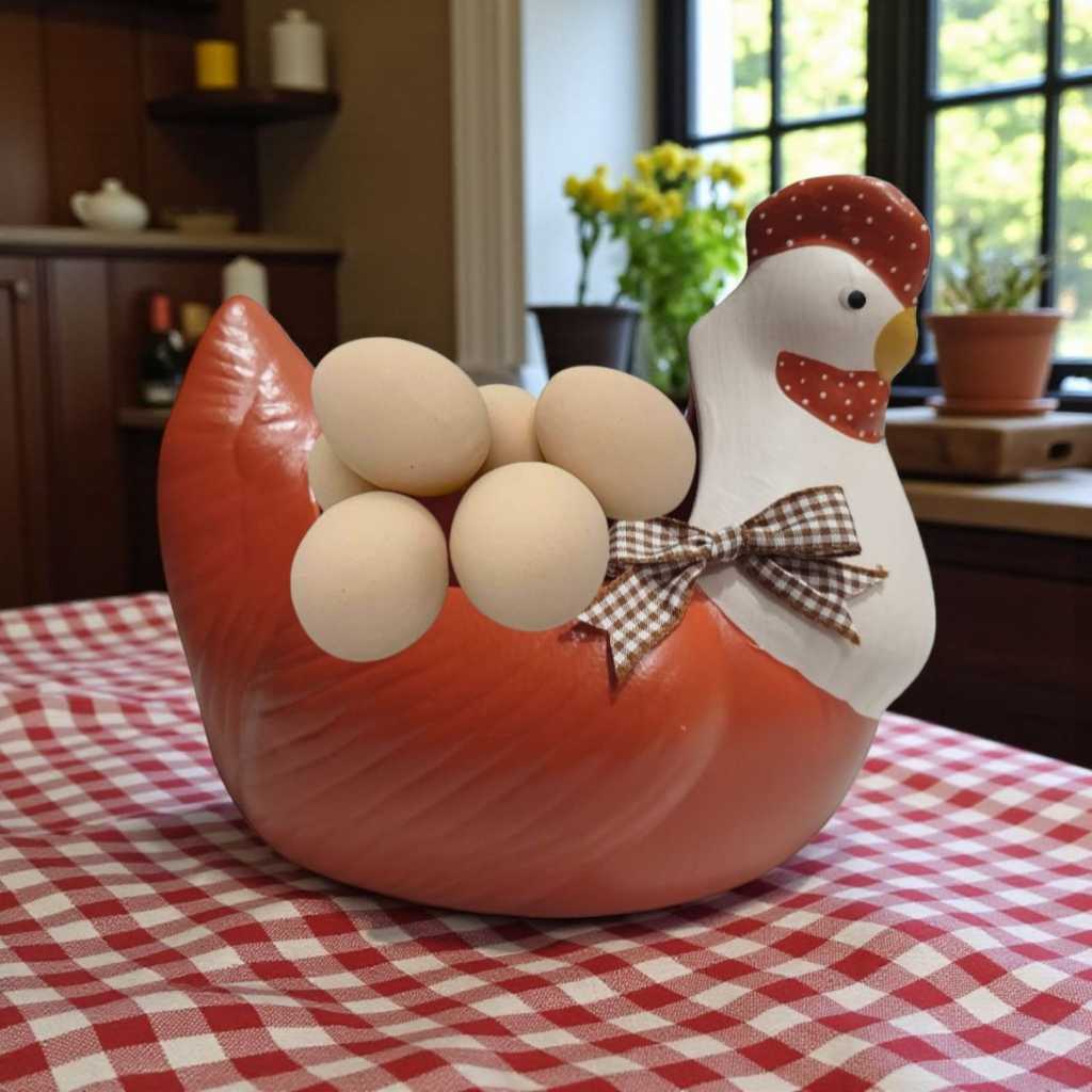 Galinha Elegance Aberta Porta Ovos Cor Ferrugem