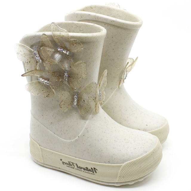 Galocha Bota de Chuva Plugt Confortável Menina Reciclável Sustentável Drops Borboletas Madre Pérola