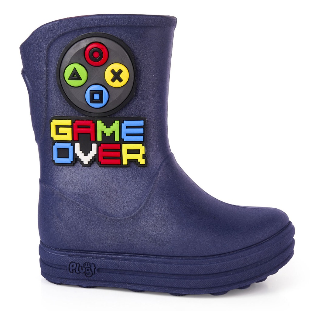 Galocha Infantil Acqua Plugt Menino Jogo Game Over Controle Preto Marinho Impermeável Confortável