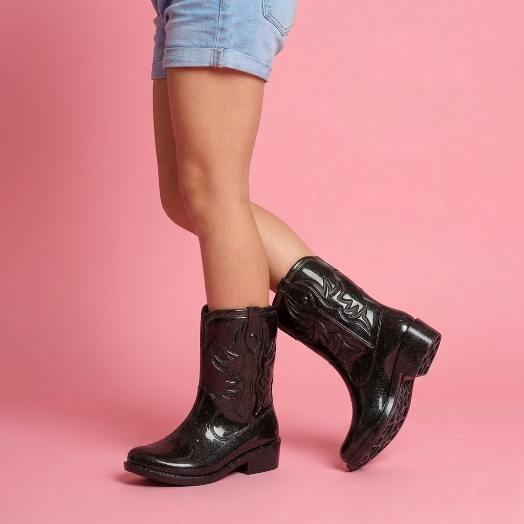 Bota Texana Infantil Feminina Flexível Western Estilo e Diversão! Deixe a sua pequena boiadeira brilhar com a Bota Texana Infantil Western! Unindo o charme clássico do estilo country com a praticidade das Bota, este modelo é perfeito para acompanhar as crianças em todas as aventuras. Ficha Técnica: Modelo: Bota Texas Infantil (Estilo Galocha) Gênero: Feminino / Menina Material: PVC Cristal Palmilha: Macia e confortável Salto: Baixo (estilo carrapeta) Indicação: Uso casual, festas de rodeio, dias de chuva e na fazenda. Medidas da Palmilha: 27/28 -------19,5cm 29/30 -------21cm 31/32 -------22cm 33/34 -------23,5cm