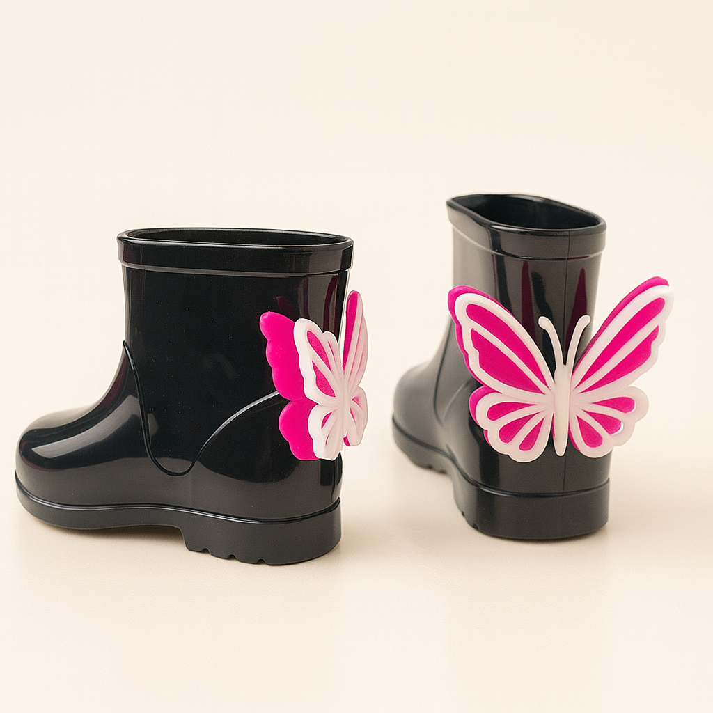 Galocha Infantil Menina Glitter Transparente com Borboleta – Bota de Chuva Infantil Antiderrapante Premium