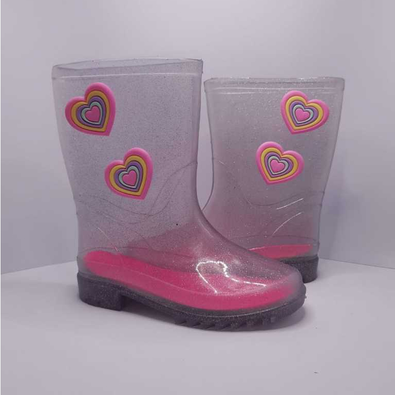 Galocha Infantil Menina Leve Impermeável Antiderrapante com Corações – Glitter Confortável Happy Kids