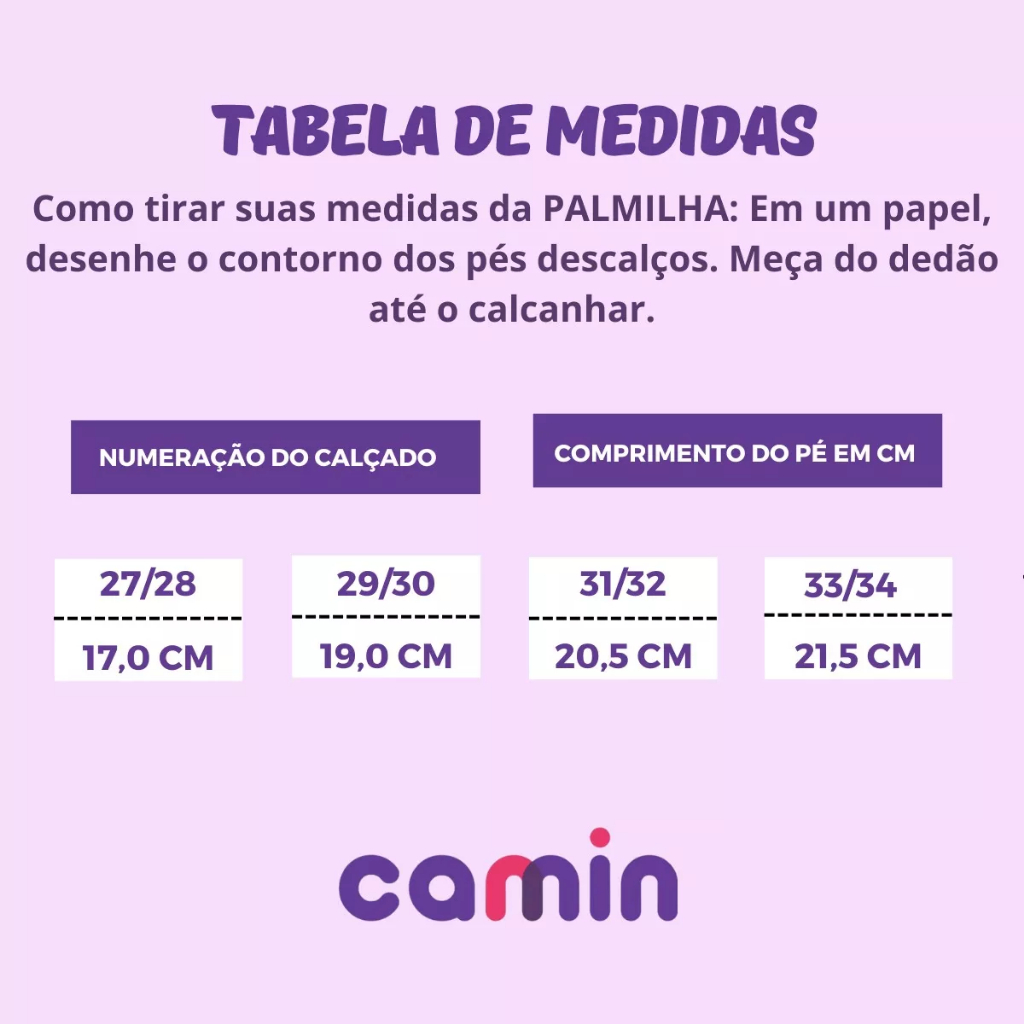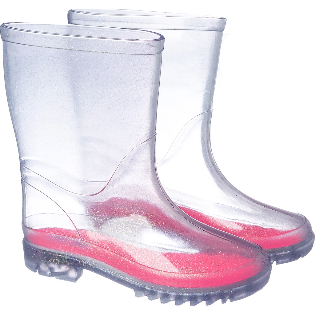 "A Galocha Transparente com Glitter da Camin Calçados é cheia de estilo, e que deixa qualquer look super divertido e descolado. Com um design sempre moderno as Galochas dão um toque bem despojado e divertido ao look das crianças. E com os pezinhos protegidos eles vão ficar prontos para curtir o dia com muita segurança, charme e conforto. Tabela de medidas: Calçados com numeração dupla Nº 27/28 17,0 cm Nº 29/30 19,0 cm Nº 31/32 20,5 cm Nº 33/34 21,5 cm ESPECIFICAÇÕES TÉCNICAS Indicado para: Dia a Dia Ocasião: Conforto Material: PVC Composição: Confeccionada em material PVC. Altura do Cano: Cano Médio Material Interno: Palmilha confeccionada em material de qualidade. Solado: PVC Altura do Salto: Baixo Fechamento: Sem fecho Recomendações de Uso: A limpeza do calçado pode ser feita com pano úmido. Não deixar submerso em água e não utilizar nenhuma forma de calor para secar. Guardar em local sem umidade. Garantia do Fabricante: Contra defeitos de fabricação."
