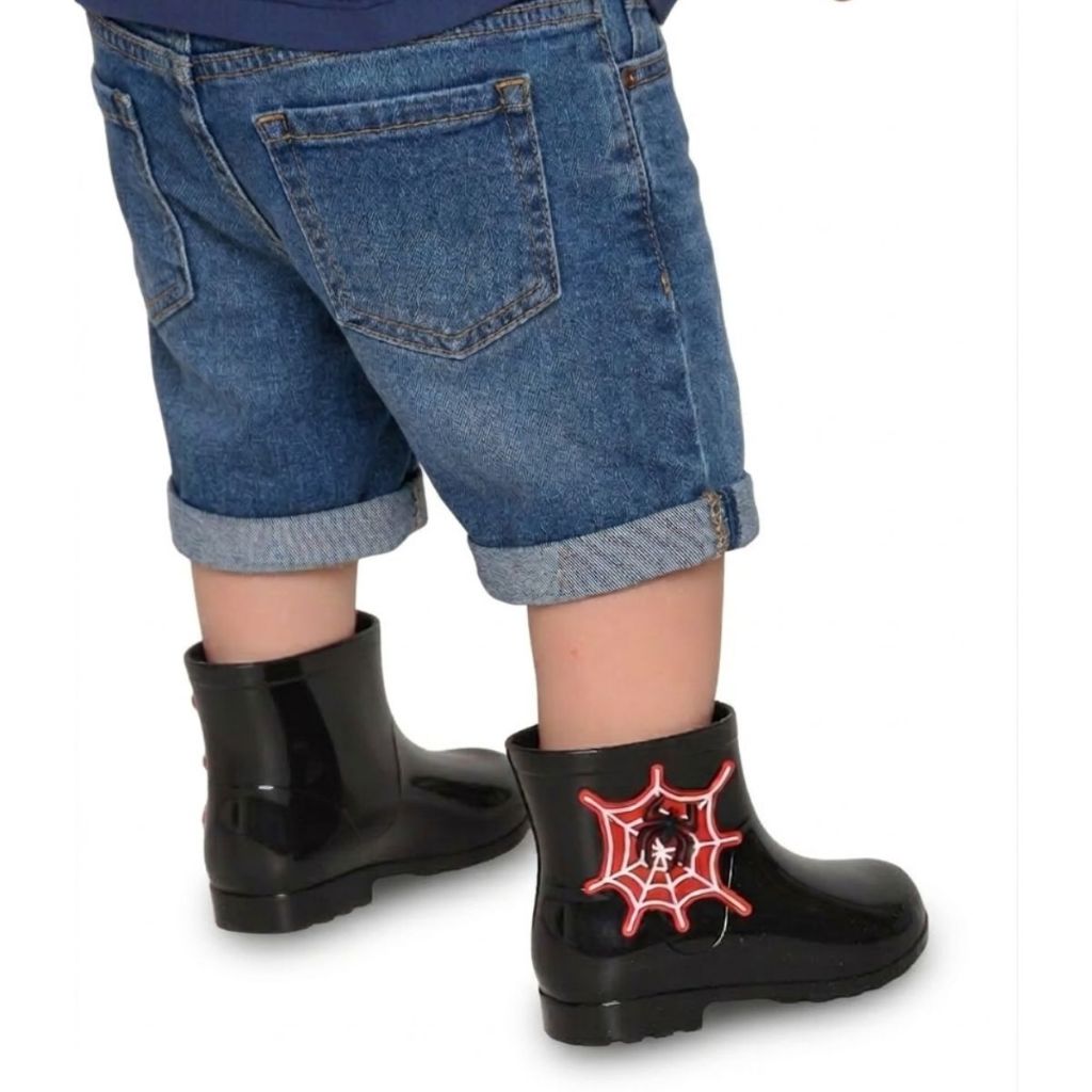 Galocha Infantil Menino Baby Aranha Azul Preto Bota Botinha Chuva Frio Inverno Criança Confortável