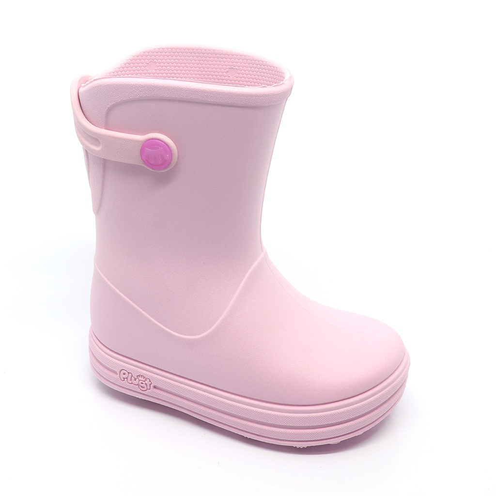 Galocha Infantil Plugt Menina Menino Rosa Claro Leve Confortável Impermeável Antiderrapante