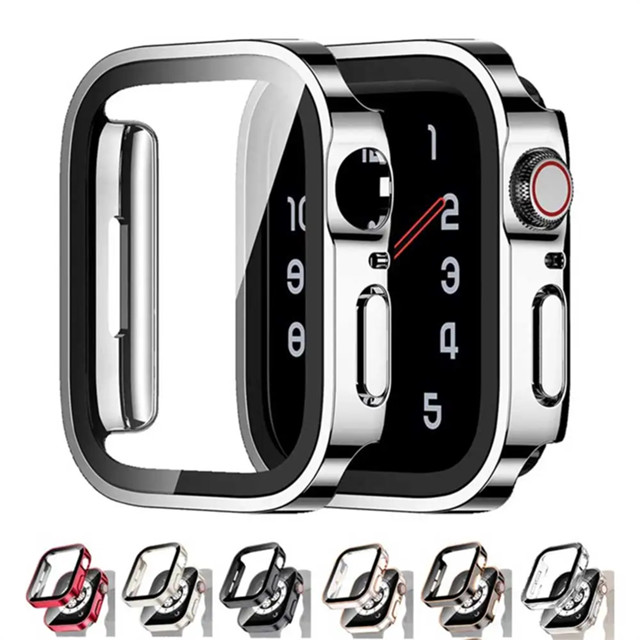 Galvanoplastia Capa+Vidro Película Para Apple Watch 10 42mm 46mm 40mm 44mm 41mm 45mm 49mm iWatch Protetor Capinha Case