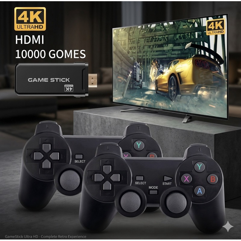 Game stick 20000+ Jogos M4K 2 controles sem fio console portátil jogos retrô antigo - 4 Pilhas inclusas