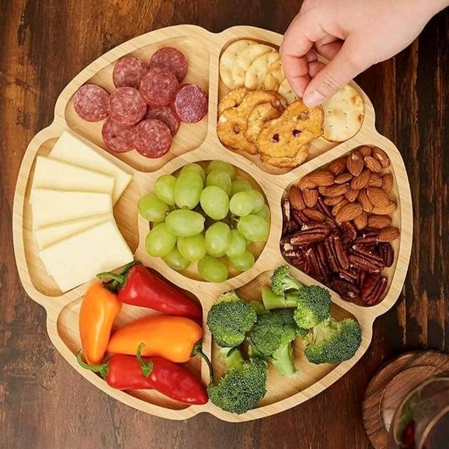 Gamela Petisqueira Tábua Petisco Tipo Bambu MDF FLOWER 29cm Petisqueira com 7 Divisórias para Frios Churrasco
