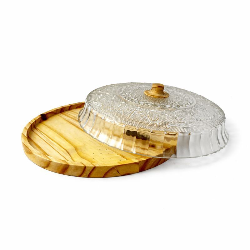 Gamela Porta Pudim e Torta em Madeira Pinus com Tampa de Vidro – Artesanal Boho Chic