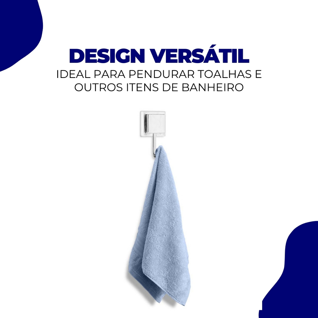 Gancho Cabide Suporte Porta Toalha de Rosto de Parede Banheiro 3M Sem Furo Cromado Arthi