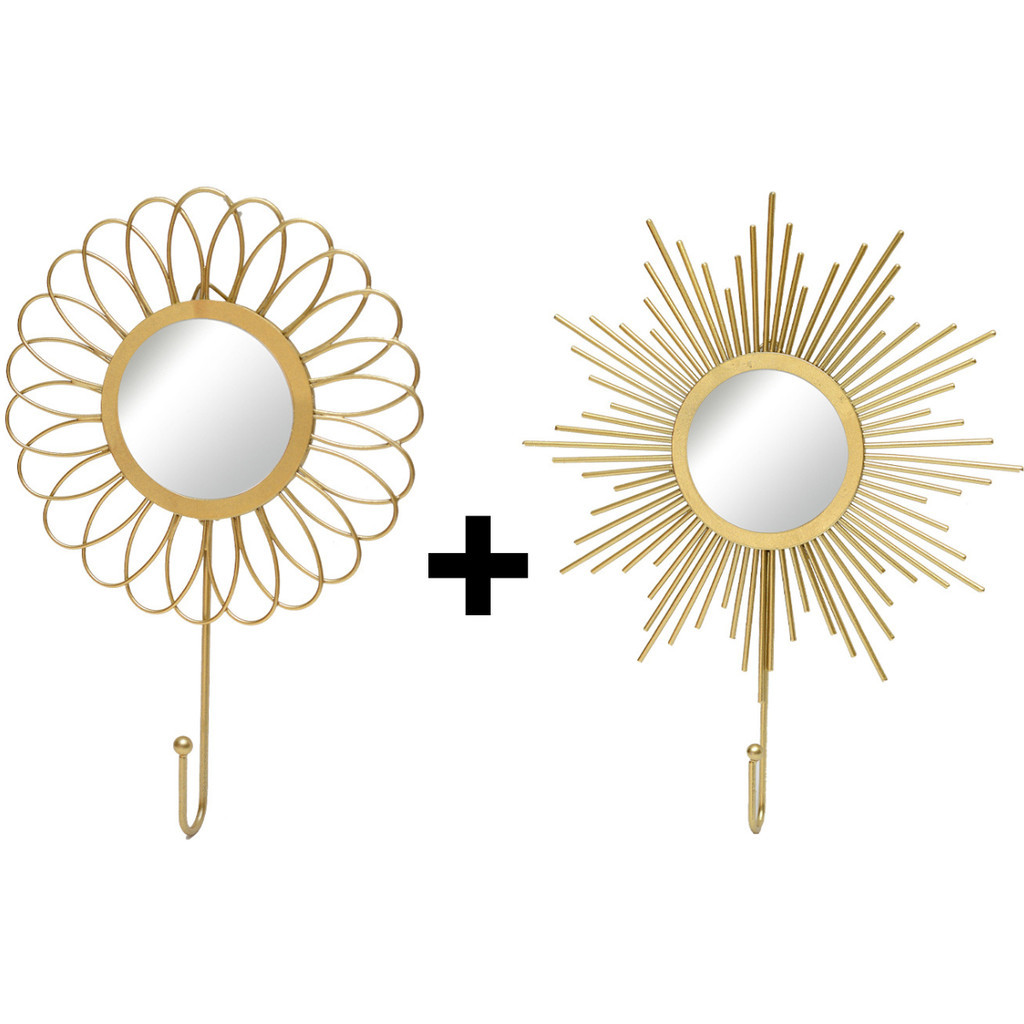 Gancho Cabideiro Espelho de parede decorativo - Unidade Produzido em metal e espelho de vidro, pode ser usado tanto para pendurar chaves, como para deixar casacos, mochilas e bolsas leves. Possui no seu verso um suporte para parafuso ou prego (não incluso). Dimensões (Compr. x Larg. x Alt. ): 13 x 2 x 19,5 cm Opções: Flor ou SolDimensões espelho (Diâmetro): 5,5 cmPeso: 45 gMaterial: Metal e espelho de vidro Utilização: Recomendamos o uso em ambiente interno para maior durabilidade.Atenção: Produtos de decoração, objetos de uso e parafusos para fixação na parede não acompanham o produto.Observação: Evite molhar excessivamente e expor ao sol. Limpar com pano seco.