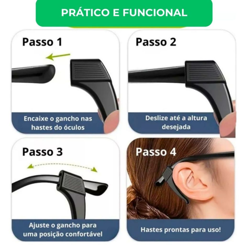 Seja muito bem vindo(a) Estamos entre os melhores vendedores da Shopee. Tenha tranquilidade de comprar de uma empresa 100% brasileira. Despachamos sua compra em até 24 horas! (Tudo que sair até as 16:00 é enviado no mesmo dia!) Kit com de 2 até 12 Suportes Trava Armação de Óculos Antiderrapante em Silicone – Conforto, Segurança e Fixação Garantida! Evite que seus óculos escorreguem do rosto com este Kit com até 18 unidades de suporte antiderrapante em silicone. Ideal para óculos de grau, óculos de sol, óculos de proteção e armações em geral. -------------------- ✅ Principais Benefícios: 🔒 Fixação firme atrás da orelha – Não deixa o óculos cair, mesmo com movimento. 💧 Silicone macio e antialérgico – Conforto para uso prolongado sem irritar a pele. 🕵♂ Discreto e leve – Não interfere no visual e se adapta a diferentes armações. 💼 Ideal para o dia a dia e para atividades físicas – Corrida, trabalho, caminhada, ciclismo e mais. ♻ Produto reutilizável e lavável – Alta durabilidade com fácil higienização. -------------------- 📦 SELECIONE A QUANTIDADE DESEJADA: - kit com 2 ate 24 unidades ( 1 a 12 Pares) Cores sortidas ou conforme disponibilidade 🔎 Compatível com: - Óculos de grau - Óculos de sol - Óculos de segurança - Óculos infantis e adultos - Armações de acetato, metal ou plástico -------------------- 🚀 Por que comprar com a gente? Produto à pronta entrega com envio rápido Atendimento ágil e suporte ao cliente Garantia de satisfação ou seu dinheiro de volta 🛒 Compre agora e nunca mais deixe seu óculos escorregar! -------------------- - As fotos do anúncio são reais do produto. - Envio rápido e seguro em menos de 24h para todo o Brasil. - Temos a pronta entrega, com risco de acabar a qualquer momento. DÚVIDAS Caso tenha alguma dúvida mande sua pergunta no Chat da nossa loja, você será respondido o mais rápido possível.