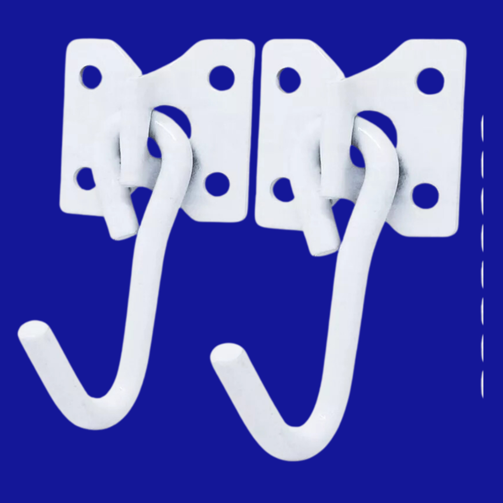 Par de gancho de rede reforçado para descanso. Kit com par de ganchos, parafusos e buchas perfeitos para a instalação. Suporta até 120kg. Alta resistência, pode ficar exposto a chuva que não enferruja. •• O Kit acompanha: • 2 Ganchos de Rede Brancos • 8 Parafusos Philips • 8 Buchas de 10mm para maior segurança • Material: Aço • Comprimento: 10cm • Tamanho da Chapa: 5,5cmx4,2cm