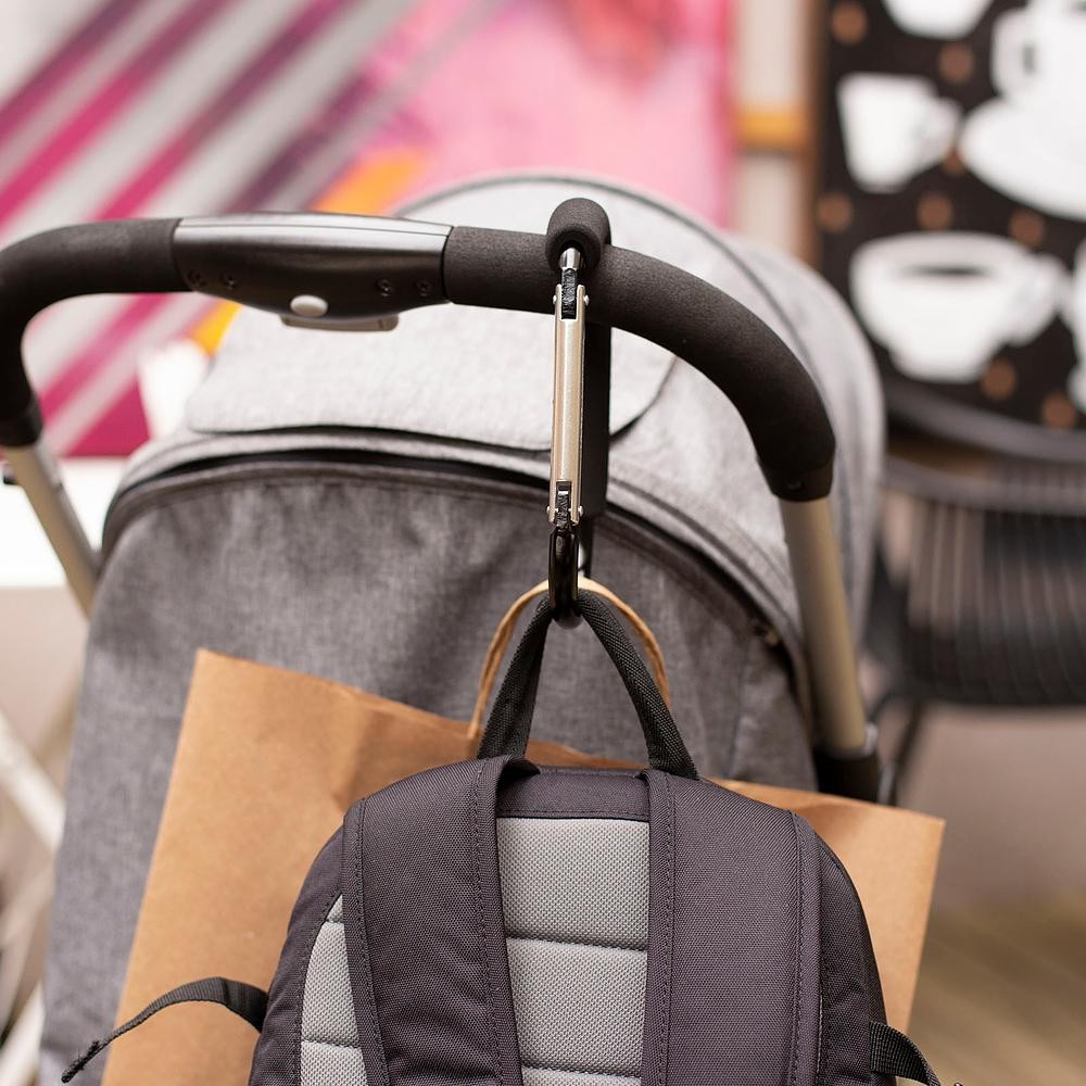 Feito em alumínio, tem punho emborrachado e permite pendurar sacolas de forma fácil e prática em diferentes carrinhos. O Gancho multiuso Safety 1st é perfeito para pendurar bolsas e sacolas no carrinho de bebê. Pode ser usado também para carregar as compras de forma fácil e prática. Tem fechamento em clipe (tipo mosquetão), podendo ser acoplado em diferentes manoplas, deixando as mãos livres para conduzir o carrinho. O reforço emborrachado evita atrito direto do metal com a manopla e também torna mais confortável para carregar simultaneamente várias sacolas com a mão! Punho emborrachado confortável Fechamento em clipe ( tipo mosquetão) Uso em diferentes manoplas de carrinhos (peso máximo até 5 kg*) Uso para carregar várias sacolas com mão suportando até 20 kg * Atenção ao pendurar pesos na manopla do carrinho. O excesso de peso pode desestabilizar o carrinho.