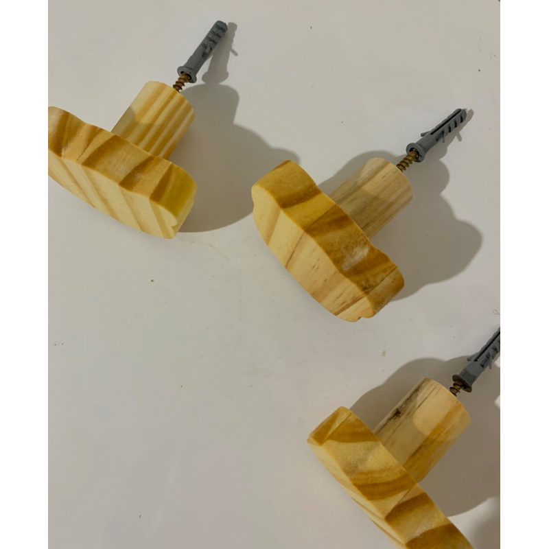 Kit Ganchos de Madeira Pinus Natural em formato de URSINHO ***Kit 3 ganchos em formato URSINHO Transforme seus ambientes com charme, praticidade e um toque de elegância! Este kit Ganchos é feito em madeira pinus natural de alta qualidade. 📏O URSO tem acabamento com quinas retas. A profundidade total é de 5centímetros, sendo 1,5cm da espessura frontal somado com 3,5cm do espaço útil do pendurador. Com bucha 6mm suporta até 8Kg ️🛠️ Acompanha kit de instalação completo: Cada kit inclui buchas e parafusos, prontos para uma fixação segura na parede. CONTEÚDO * Ganchos * Parafusos fixos ao gancho * Buchas 6mm Madeira pinus por ser um produto natural possui veios que deixam a peça com seu charme particular, tornando-as uma peça exclusiva. Qualquer dúvida nos chame no chat.