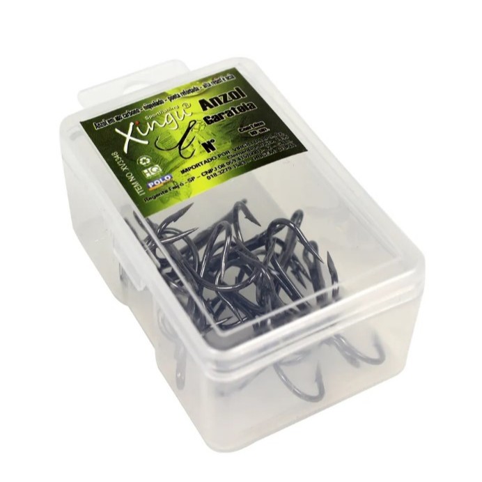 Garateia Black Xingu N° 10 (1,04cm) - 25 Peças ••••• Características ••••• Ideal tanto para manutenção de iscas artificiais como para utilização na pesca em água doce ou salgada. Excelente resistência, fabricado em aço carbono e acabamento Black niquel. Suas pontas são afiadas a laser para garantir rápida penetração na fisgada. ••••• Especificações ••••• • Fabricante: Xingu • Modelo: Garateia • Material: Aço Carbono • Tamanho: Nº 10 (1,04cm) x (0,9cm) • Cor: Black (Preto) • Quantidade: Caixa com 25 unidades