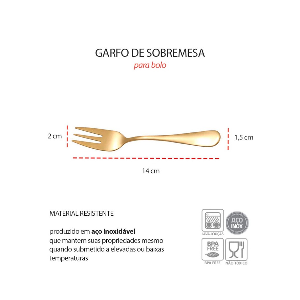 Garfo de Sobremesa Bolo Dourado Talheres Inox Bar Buffet 6un vale a pena?