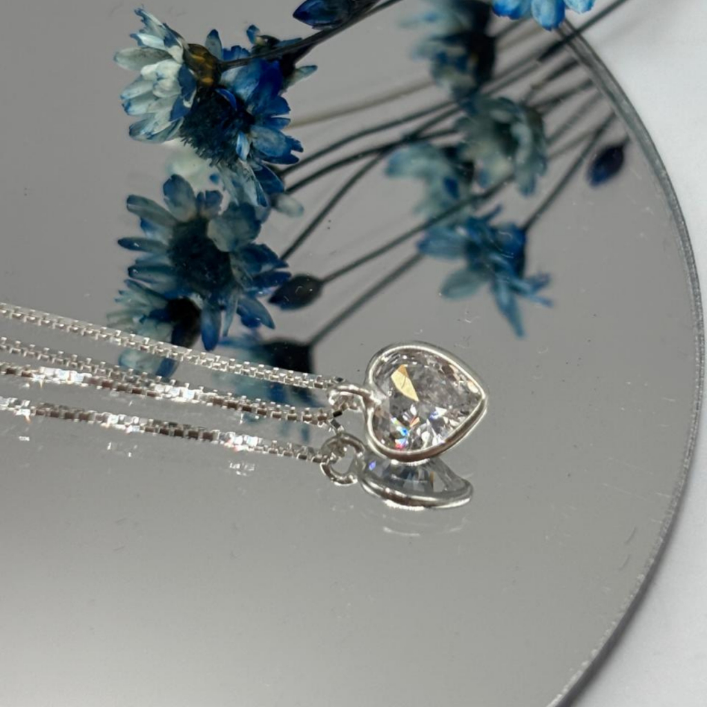 Gargantilha chocker 40cm Prata 925 Ponto de Luz coração 40cm