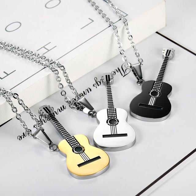 Gargantilha Colar cordão aço inox pingente guitarra violão Presentre musico rock masculino feminino