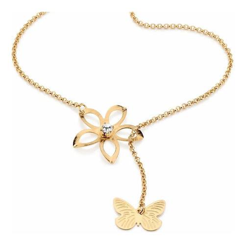 Gargantilha Flor Vazada E Borboleta 50cm Rommanel 531162