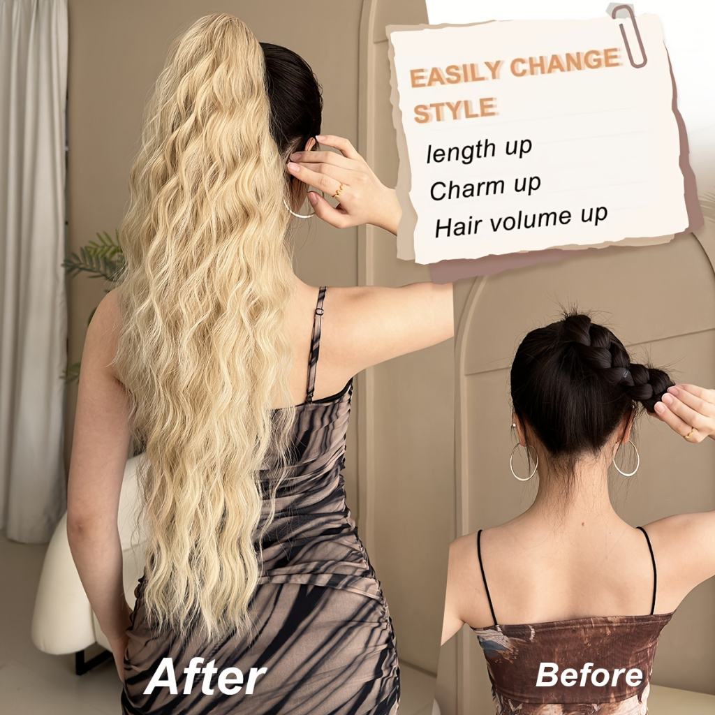 Garra Extensão De Rabo De Cavalo Cabelo Loiro 26 Polegadas Onda De Água Longa Fibra Resistente Ao Calor Sintético Adequa