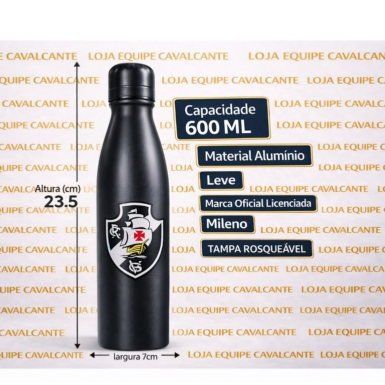 Garrafa de Alumínio 600ml – Vasco da Gama - Não Térmica Hidrate-se com estilo e demonstre sua paixão pelo Club de Regatas Vasco da Gama. A garrafa de alumínio é ideal para o dia a dia, atividades físicas, trabalho, escola ou momentos de lazer, combinando praticidade, leveza e design esportivo. Produzida em alumínio leve e durável, possui capacidade de 600 ml e acabamento moderno. O brasão do Vasco é impresso diretamente na garrafa de fábrica, proporcionando um visual bonito e fiel ao produto. A tampa rosqueável oferece boa vedação, ajudando a evitar vazamentos e facilitando o transporte na mochila, bolsa ou carro. Destaques do produto ✔ Garrafa com escudo do Vasco da Gama ✔ Capacidade de 600 ml ✔ Material em alumínio leve ✔ Tampa rosqueável com boa vedação ✔ Ideal para uso diário, esportes, trabalho e passeios Uso e Cuidados ⚠️ Este produto é indicado para uso normal no dia a dia. Por ser fabricada em alumínio leve, oferece praticidade no transporte. Porém, quedas, impactos fortes ou uso inadequado podem danificar a garrafa. Especificações Material: Alumínio Capacidade: 600 ml Medidas aproximadas: • Altura: 23,5 cm • Largura: 7 cm • Comprimento: 7 cm Peso: 0,100 kg SKU: QH072-7-B Informações importantes ✔ Produto novo ✔ Com nota fiscal ✔ Pronta entrega ✔ Envio rápido e seguro Produto ideal para uso diário ou para presentear qualquer torcedor vascaíno. LOJA EQUIPE CAVALCANTE Qualidade, confiança e compromisso com nossos clientes. Caso tenha dúvidas, ficamos à disposição para ajudar.