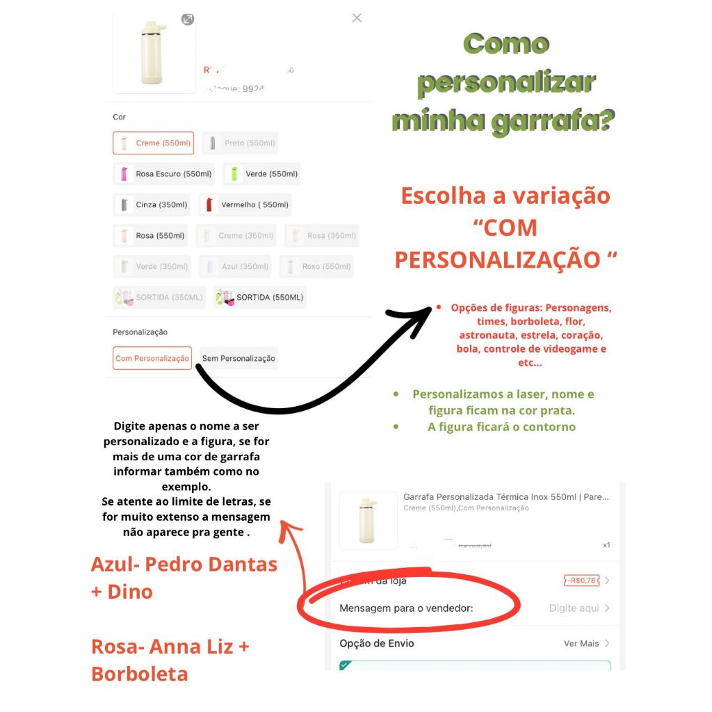 Garrafa Alumínio Personalizada 650ml Cores Premium | Preta, Azul, Vermelha, Inox e Branca