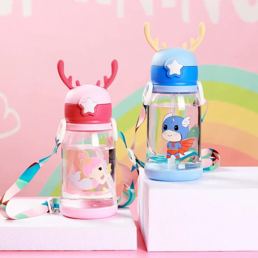 Garrafa copo De Alce Água Portátil 600ml Infantil Criança Com Canudo Desenho Para Meninas Meninos