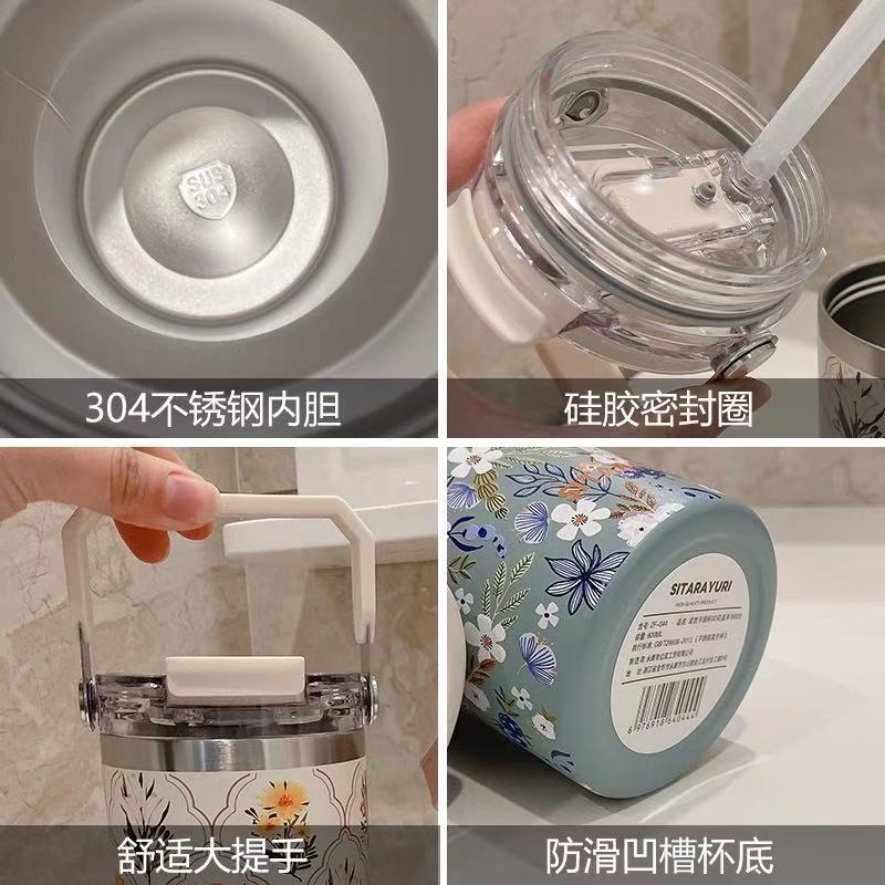 Garrafa Copo Térmica Estampada 600ml/900ml Decorada Com Alça e Canudo 1832