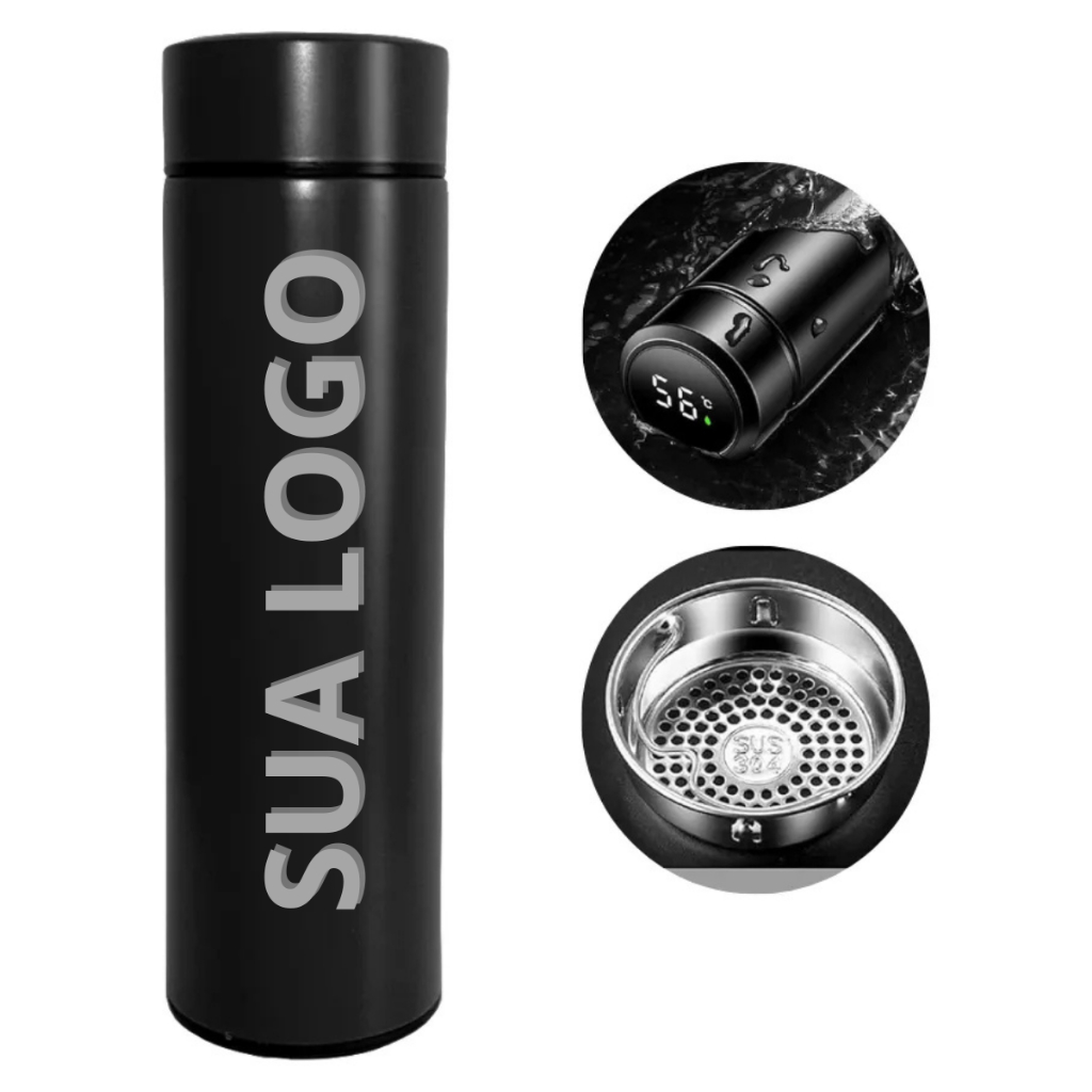 Mantenha suas bebidas na temperatura ideal por mais tempo com nossa garrafa térmica de 500ml, feita em aço inoxidável de alta qualidade! Ideal para bebidas quentes ou geladas, ela conta com uma tampa de alta vedação que evita vazamentos e conserva a temperatura de forma eficiente! Além disso, o termômetro LED digital integrado exibe a temperatura da bebida com precisão, em tempo real, sem precisar abrir a tampa! Compacta e prática, perfeita para levar para o trabalho, academia ou passeios ao ar livre! Uma opção moderna e funcional para quem não abre mão de conveniência e estilo! **Características:** - Capacidade: 500ml, ideal para porções individuais de bebidas. - Material: Por ser fabricada em aço inoxidável de alta qualidade, essa garrafa oferece durabilidade, resistência e fácil limpeza, além de ser livre de BPA, garantindo mais segurança para a sua saúde. - Isolamento Térmico Avançado: Sistema de isolamento a vácuo que mantém suas bebidas quentes por até 6 horas ou geladas por até 8 horas! - Termômetro LED Digital: Display inteligente que exibe a temperatura da bebida com precisão, facilitando o consumo na temperatura desejada. - Tampa Vedada: Tampa hermética com vedação de silicone para evitar vazamentos e manter a temperatura constante, além de facilitar o transporte em bolsas ou mochilas. - Design Compacto: Estrutura leve e portátil. - Uso Versátil: Perfeita para cafés, chás, sucos, água ou qualquer outra bebida quente ou fria. - Fácil de Usar: Simples de abrir e fechar, com sistema prático de rosca. - Resistente a Condensação: Não forma gotas de condensação, mantendo o exterior seco, sem manchas de água. - Eco-Friendly: Reutilizável, ajudando a reduzir o uso de garrafas plásticas descartáveis. >>>SOBRE A PERSONALIZAÇÃO<<< **ENTRE EM CONTATO NO CAMPO DE MENSAGEM APÓS A COMPRA!** **MANDAR A ARTE DESEJADA NO CHAT DA COMPRA, EM ALTA QUALIDADE! IMAGENS COM QUALIDADE BAIXA NÃO FICAM BOAS NO LASER! (Formatos: PDF, CDR, PNG, JPEG)** >>>ATENÇÃO, EVITE ATRASOS! ENVIE AS INFORMAÇÕES DA PERSONALIZAÇÃO NO MOMENTO EM QUE EFETUAR SUA COMPRA NO CAMPO DE MENSAGEM! SE NÃO ENVIAR DENTRO DE 12 HORAS, DESPACHAREMOS SEM PERSONALIZAÇÃO!<<< *São permitidas até duas gravações* *Para uma terceira gravação será cobrado um valor extra de R$5,00 por copo* *Na fonte 12, no pingo da letra i tem um coração* ✅Logo + Logo; ✅Logo + Nome; ✅Nome + Nome; **NÃO CONSEGUIMOS DEIXAR SUA ARTE COLORIDA, ELA FICARÁ NA COR DO INOX (PRATA).** **PARA COPOS COM CORES SORTIDAS, DEVE SER FEITO A COMPRA EM: ESCOLHA SUA COR. APÓS A COMPRA NÃO SERÁ POSSÍVEL TROCAR A COR DO PEDIDO.** 🚚⭐ENVIO RÁPIDO E SEGURO!🚚⭐