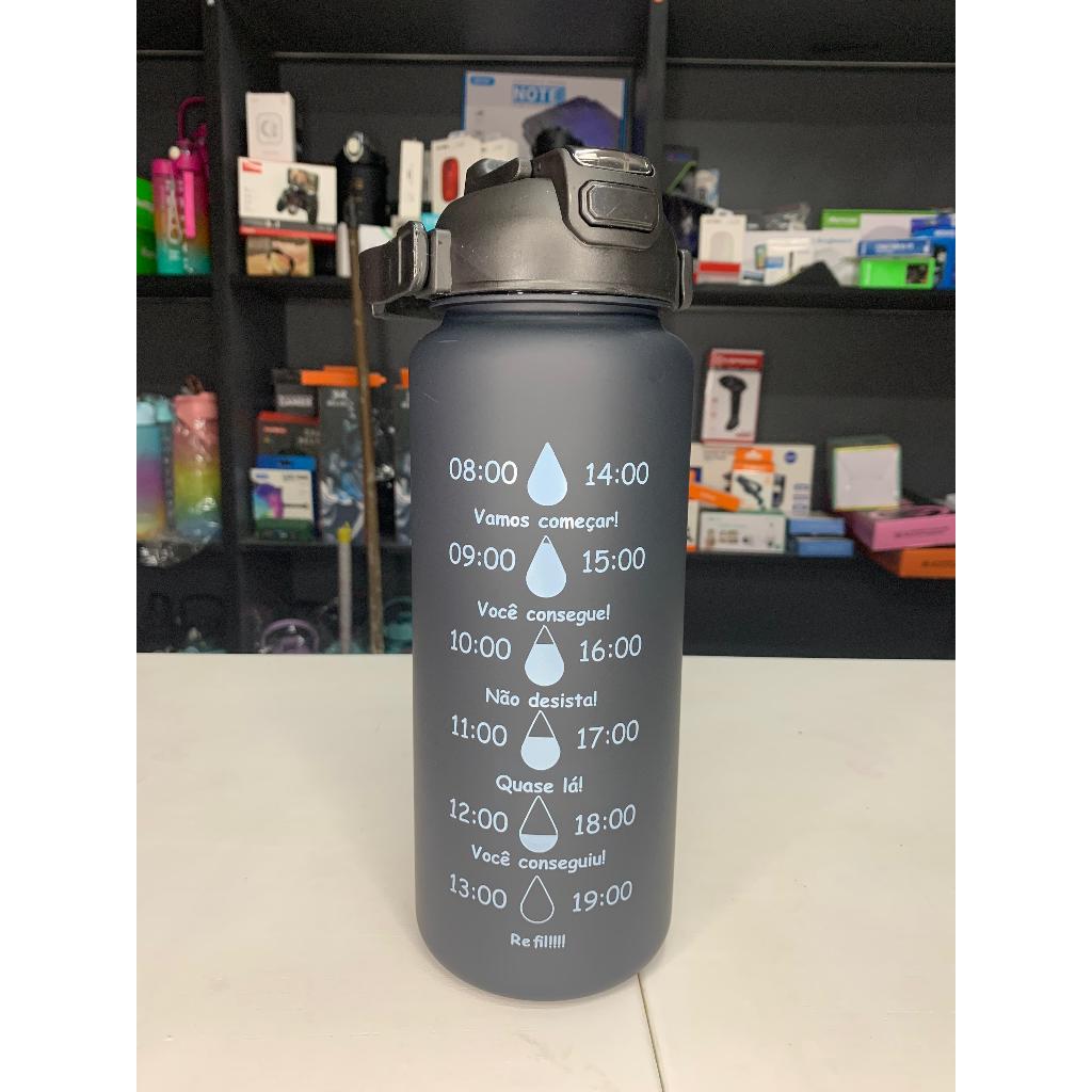 Galão, Garrafa e Copo De Água Com Canudo Squeeze 2L, 900ML e 500ML Esta garrafa de água com marcador de tempo lhe dá motivação para atingir seus objetivos. É adequado para acampar, caminhar, andar de bicicleta, fitness e outros esportes. * Fácil de transportar, pode levá-lo com você, você pode levá-lo com você, você pode encontrar escolas, escritórios, visitas, etc, onde não pode suporta-laa * Frasco de água livre de BPA, limpeza limpa e lava-louças automáticas, 100% livre de BPA e quaisquer ingredientes, a introdução de garrafas de água de alta qualidade porta copos de carro movível, porta copos de fitness e suporte para garrafa de mochila, muito adequado para Fitness, fitness, lazer de escritório e entretenimento Característica do produto: - Design de capas de reforço, um clique para abrir. - Design de alça, fácil de transportar. Especificação do produto: - Material: PC, PP, ABS, Silicona - Capacidade: 2L, 900ML e 500ML - Resistência à temperatura: 0 graus Celsius - 80 graus Celsius. Tamanho: - Galão 2L= 11x30cm - Garrafa 900ML= 7,5x27cm - Copo 500ML= 4,7x27cm 1x Garrafa esportiva motivacional 1x Canudo para garrafa de 2L e 900ML 1x Garrafa de 500ML não utiliza canudo